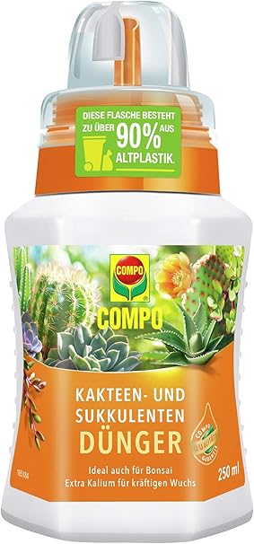 Compo Kakteen Und Sukkulentendunger Fur Alle Kakteen Bonsais Und Dickblattrigen Pflanzen Sukkulenten Spezial Flussigdunger Mit Extra Kalium 250 Ml Amazon De Garten